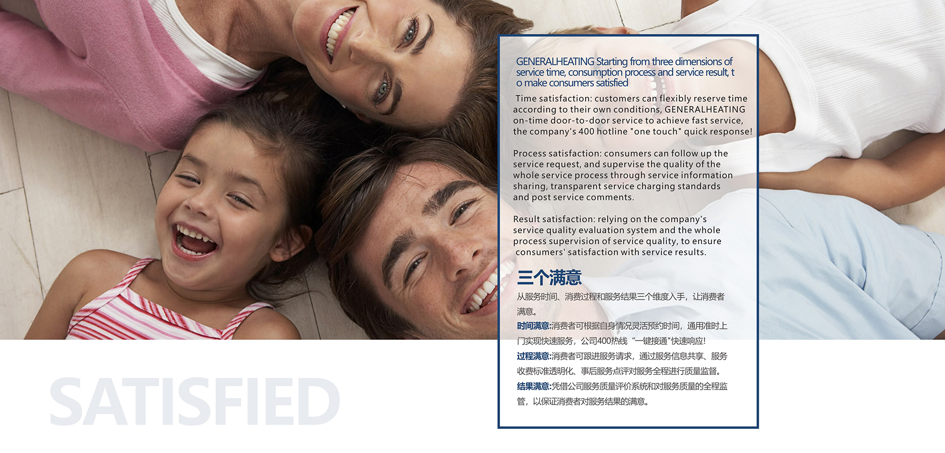 时间满意:消费者可根据自身情况灵活预约时间,通用准时上门实现快速服务,集团400热线“一键接通”快速响应!